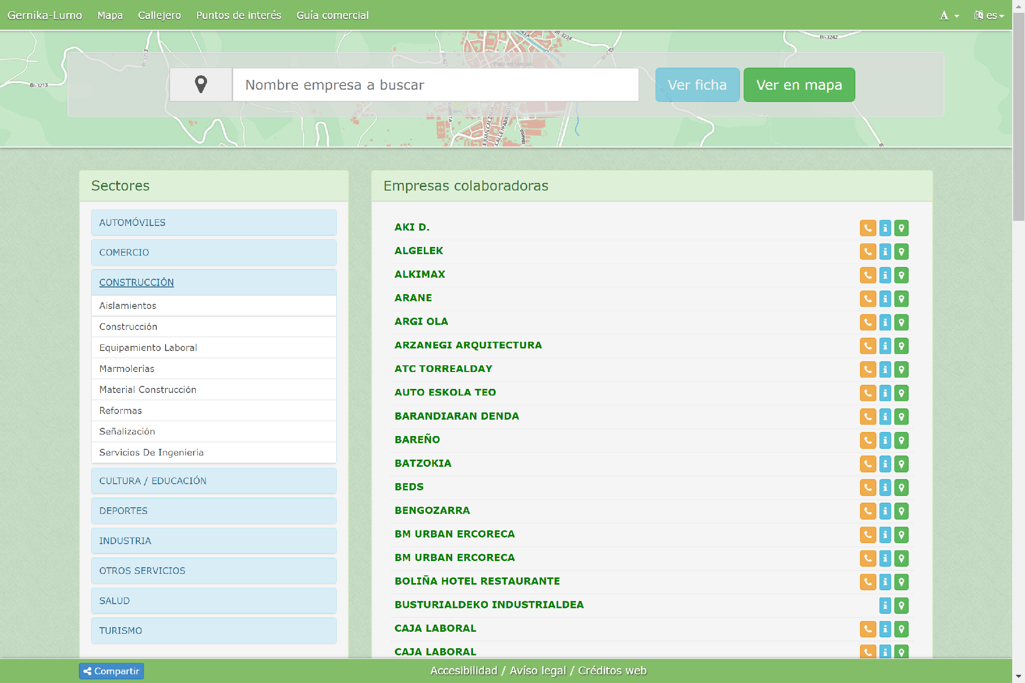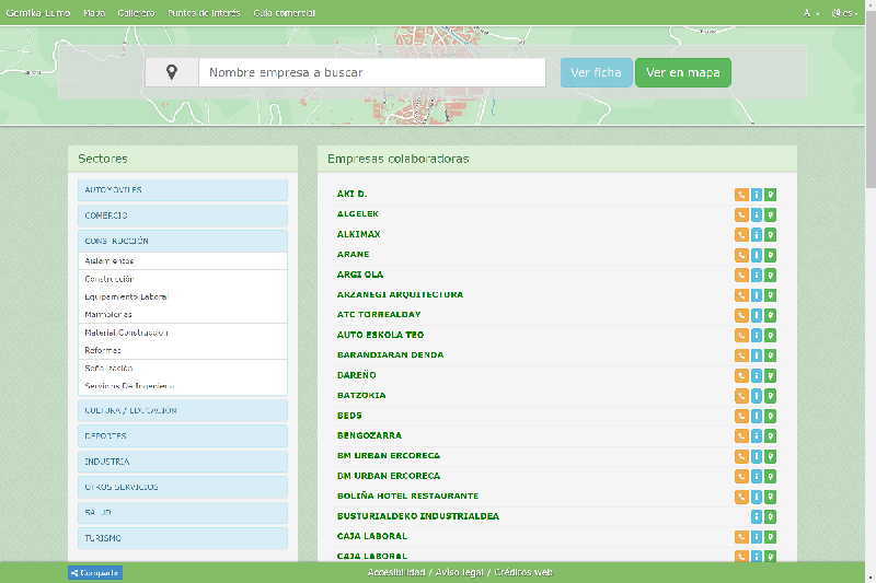 Un directorio  organizado por familias y sectores con búsqueda de empresas incorporada. Cada empresa tiene su propia ficha  con información adicional.