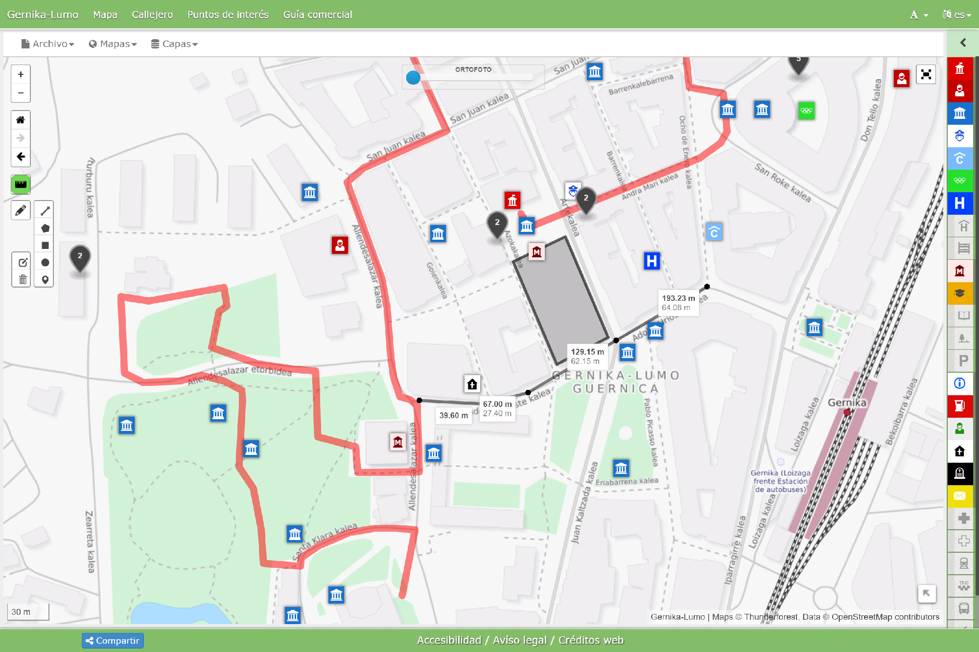 El desarrollo y la implantación del sistema son a medida del cliente. Diseño específico de cartografía, capas de datos adicionales, agrupación de puntos de interés personalizados, etc.