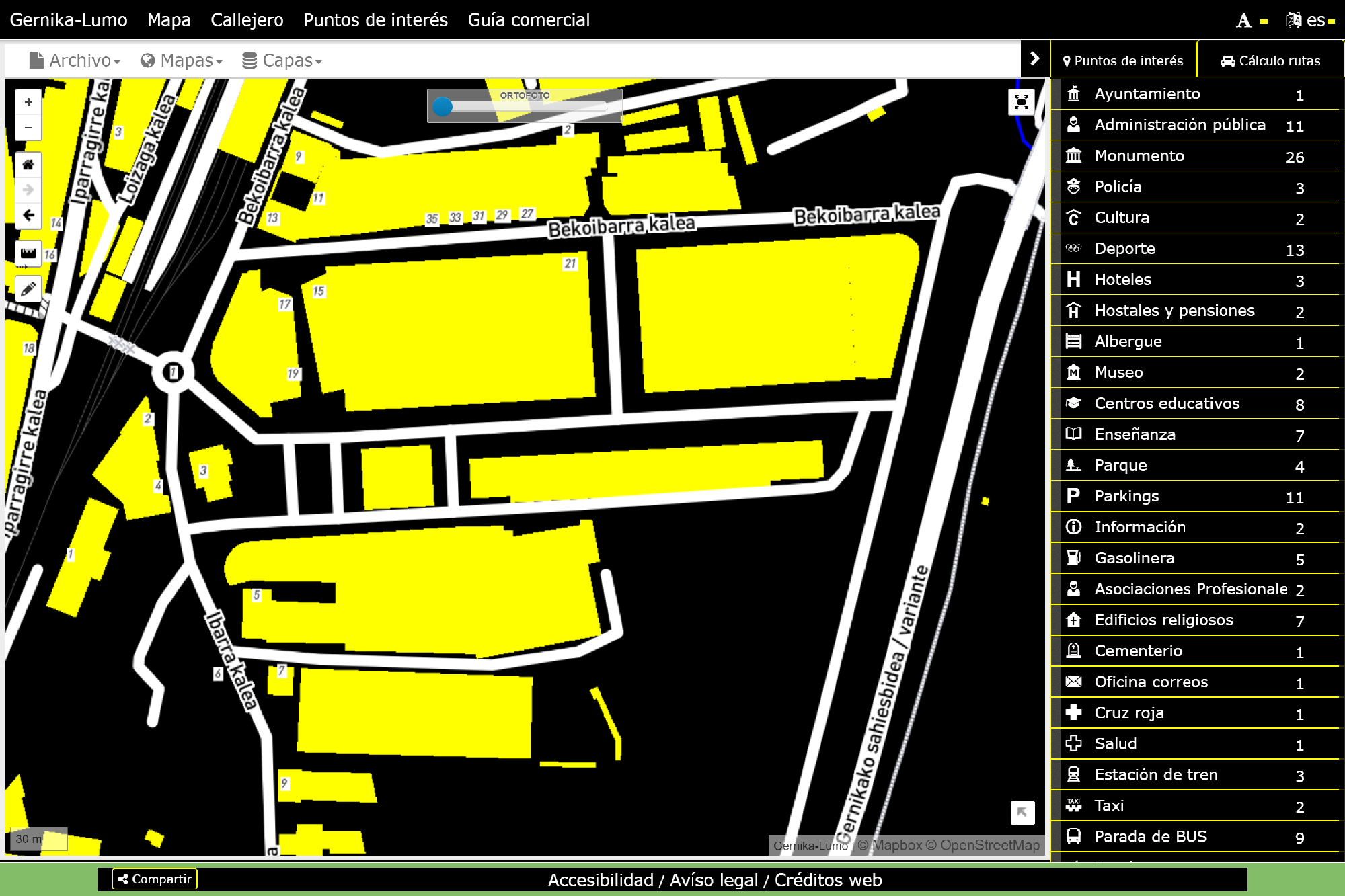 Tanto en formato de lista como integrado en el propio visor, el usuario podrá acceder a los diversos puntos de interés del municipio. Cada punto además cuenta con una ficha personalizada, con información  y fotografías.